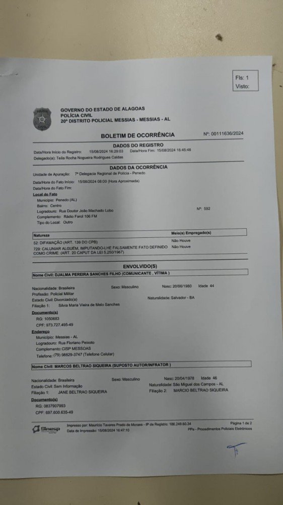 A situação levanta questionamentos sobre as motivações por trás das acusações. Para muitos, os ataques contra o capitão têm todas as características de uma perseguição política. Em situações como essa, é comum que figuras públicas sejam alvo de campanhas difamatórias com o objetivo de minar sua credibilidade e desviar a atenção de questões mais urgentes. Por este motivo, o capitão acabou lavrando um BO por calúnia e difamação, para que o radialista Marcus Beltrão possa pagar pelos crimes cometidos no uso da concessão pública da rádio de Penedo. O destempero do suposto radialista é latente usando os microfones, aparentando até estar com problemas de ordem psiquiátrica. O descontrole é total, coisa já percebida pela população da cidade de Penedo.