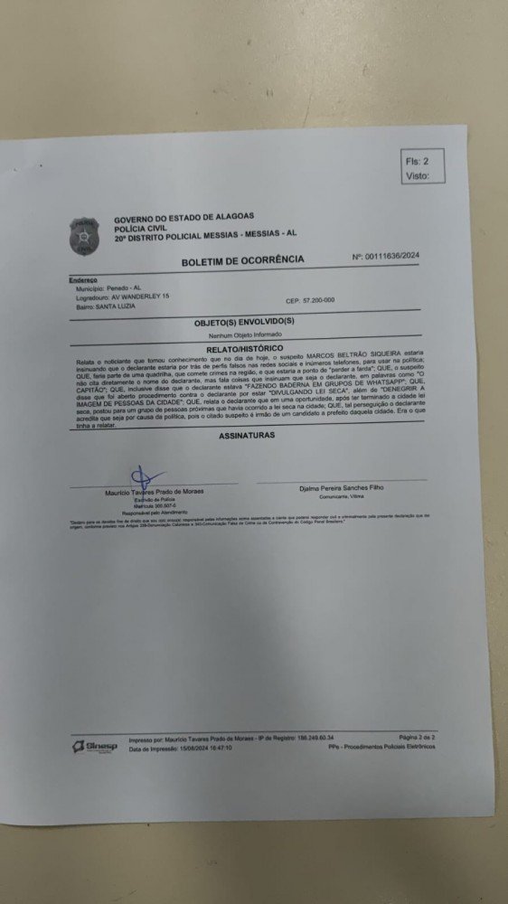 Durante a semana passada capitão da PM Djalma Pereira, que também tem formação em jornalismo, esclareceu que não reside em Alagoas e que sua participação no grupo de WhatsApp foi apenas uma brincadeira entre amigos. “Não fui eu que informei sobre a localização da blitz. A informação foi divulgada por outros e eu apenas encaminhei depois da blitz já encerrada”, afirmou o capitão. O que começou como um comentário despretensioso entre colegas acabou sendo distorcido e amplificado, com o objetivo de manchar a reputação do oficial, fatos que estão sendo comprovados reiteradamente durante os dias de quinta feira na rádio farol da cidade de Penedo, onde o irmão do candidato a prefeito, Marcus Beltrão, faz um programa onde divulga fake news e atacando os adversários e pessoas que não compactuam com as posições políticas do grupo do Március Beltrão.