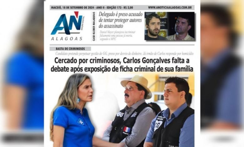 JORNAL A NOTÍCIA DIGITAL – BASTA DE CRIMINOSOS! Cercado por criminosos, Carlos Gonçalves falta a debate após exposição de ficha criminal de sua família
