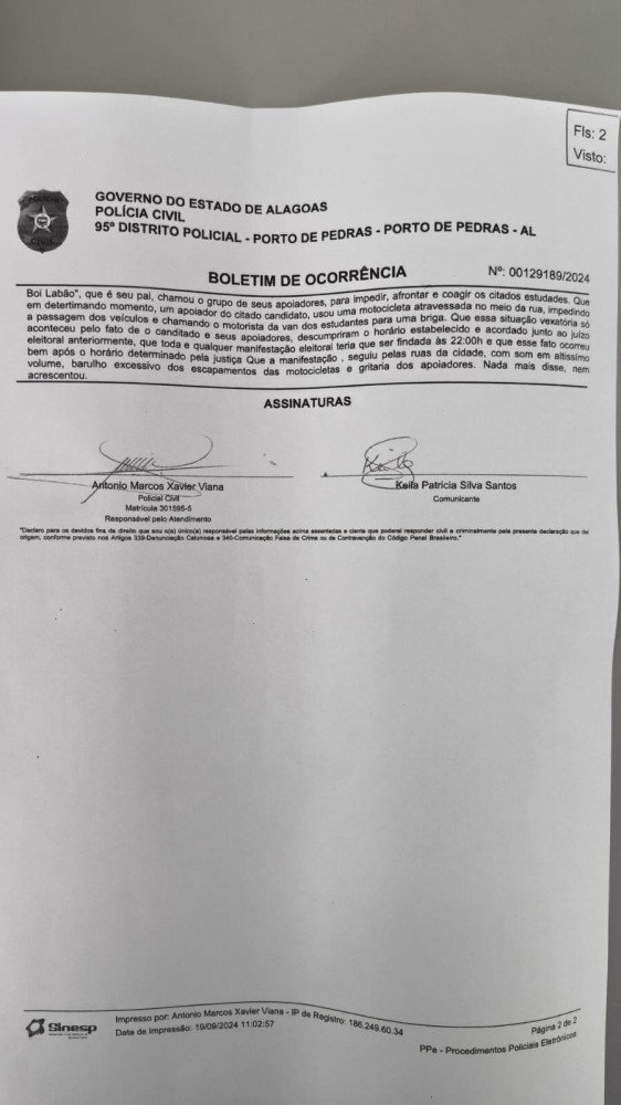 Inconformados com a situação e assustados com o ocorrido, os alunos foram a delegacia buscar proteção e reportar o ocorrido à autoridade policial onde um Boletim de Ocorrência foi lavrado.