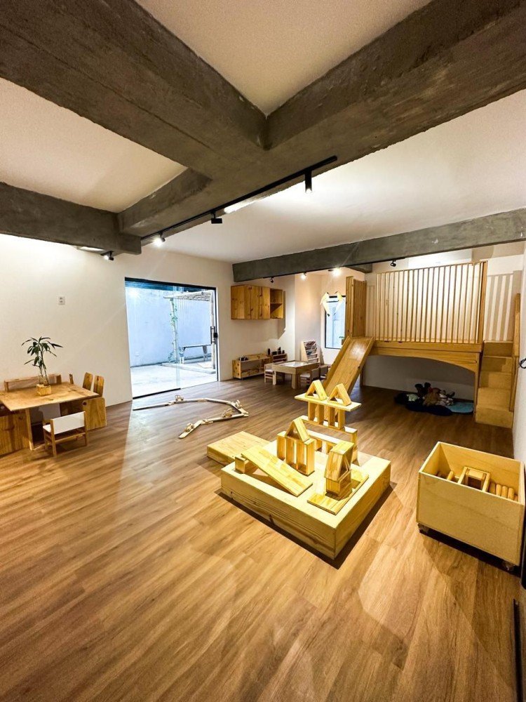 O espaço do Ateliê Bambu conta com salas amplas e iluminadas, com aberturas para áreas externas, com mangueira, casinha de madeira, fonte de água e horta. Nosso mobiliado foi pensado para estimular a exploração e a criatividade das crianças. “Cada contexto foi pensado de forma intencional para ser um lugar de provocações, onde os pequenos têm a oportunidade de investigar, brincar e interagir de maneira livre e autônoma”, destacou Nelyne.