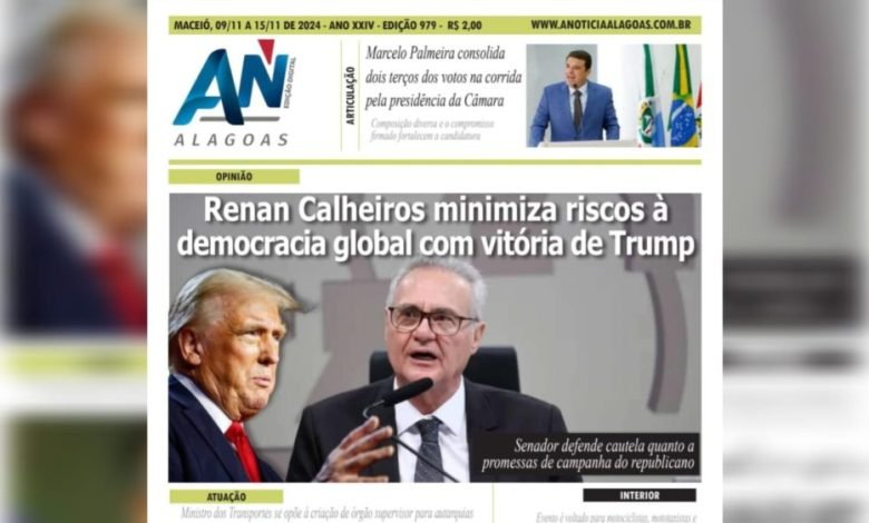 JORNAL A NOTÍCIA DIGITAL – OPINIÃO! Renan Calheiros minimiza riscos à democracia global com vitória de Trump Senador defende cautela quanto a promessas de campanha do republicano NOV-979