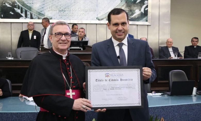 Dom Valdemir Ferreira dos Santos é nomeado Cidadão Honorário de Alagoas em sessão solene na Assembleia Legislativa.