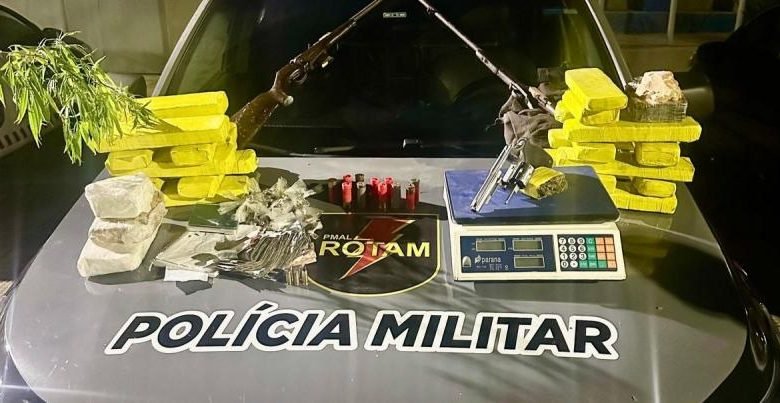 As autoridades policiais realizaram buscas nos endereços indicados e encontraram três armas de fogo, sendo um revólver, um rifle e uma espingarda, além de quase 17 quilos de drogas, incluindo crack, maconha e cocaína, e uma balança de precisão. Os homens foram detidos e encaminhados à delegacia para os procedimentos legais.