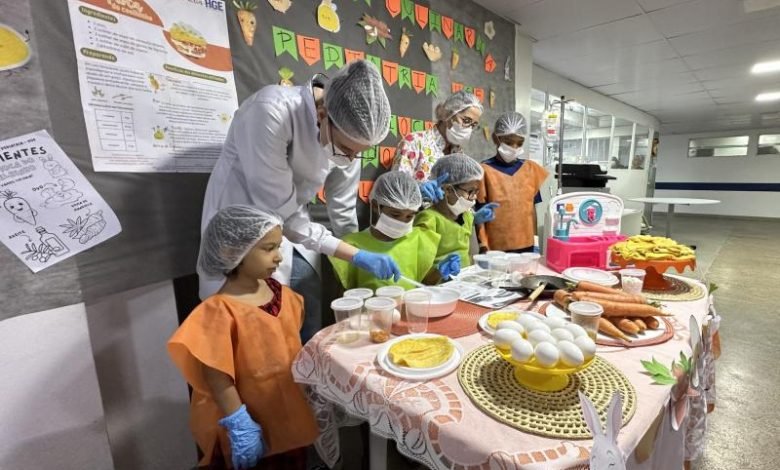 A atividade contou com a participação ativa dos pais e mães, promovendo integração e momentos de aprendizagem em família. Uma das receitas ensinadas foi a “Crepioca do Coelhinho”, preparada com ingredientes como ovo, cenoura, goma de tapioca, azeite e sal. A nutricionista Rosemary Caldas, do HGE, ressaltou os benefícios nutricionais dos ingredientes, destacando a importância de uma alimentação saudável para o desenvolvimento e bem-estar das crianças.