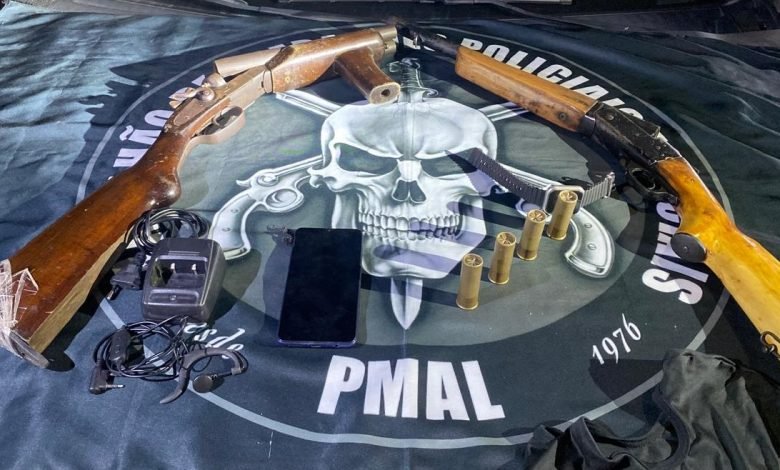 Polícia Militar apreende duas espingardas calibre 12 em abordagem em Rio Largo nesta terça-feira.