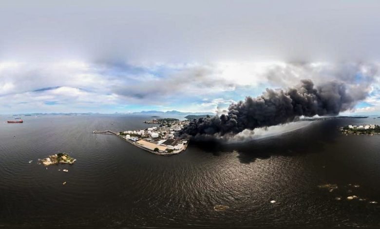 BRASIL – Corpo de Bombeiros finaliza combate a incêndio em fábrica de óleo lubrificante na Ilha do Governador, Rio de Janeiro