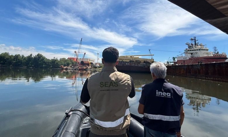 BRASIL – Estaleiro ilegal é interditado no Rio de Janeiro após desmanche ilegal de navios, causando contaminação na Baía de Guanabara.