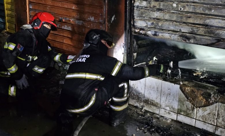 Incêndio destrói barracas de confecções e celulares na Feira do Rato, em Maceió, mas é controlado pelo Corpo de Bombeiros.