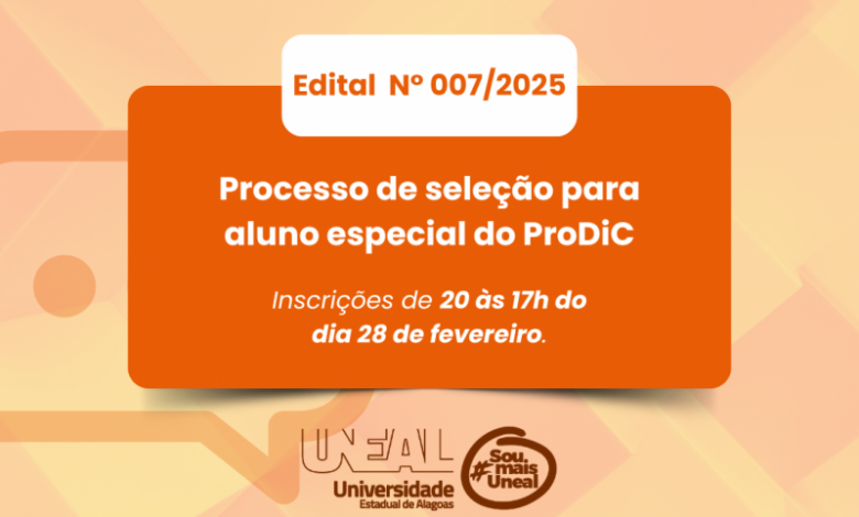 ALAGOAS – Uneal abre inscrições para 20 vagas de aluno especial no mestrado do ProDiC; prazo vai até 28 de fevereiro