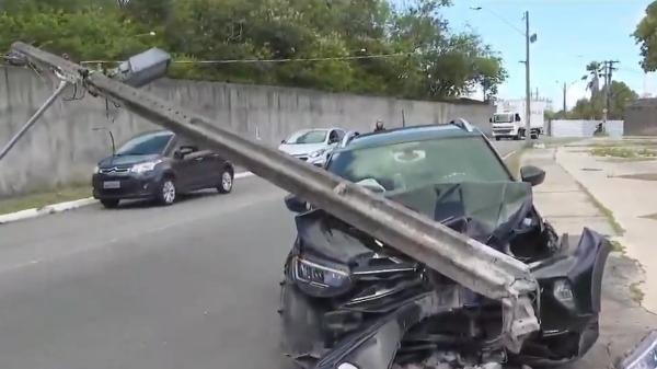 Motorista perde controle de carro e atinge poste no Farol, em Maceió, mas ninguém fica ferido