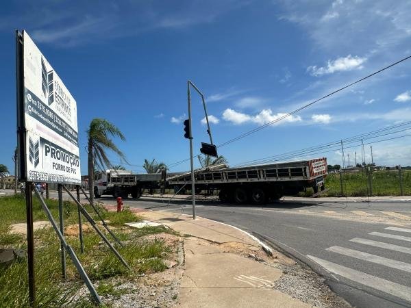 Carreta derruba poste e causa transtornos no São Jorge, em Maceió; Equatorial Energia realiza reparos e DMTT orienta trânsito.