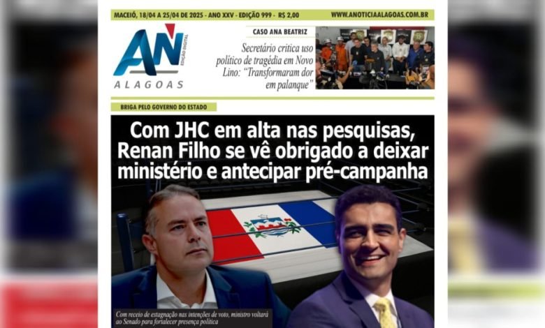 JORNAL A NOTÍCIA DIGITAL – BRIGA PELO GOVERNO DO ESTADO! Com JHC em alta nas pesquisas, Renan Filho se vê obrigado a deixar ministério e antecipar pré-campanha