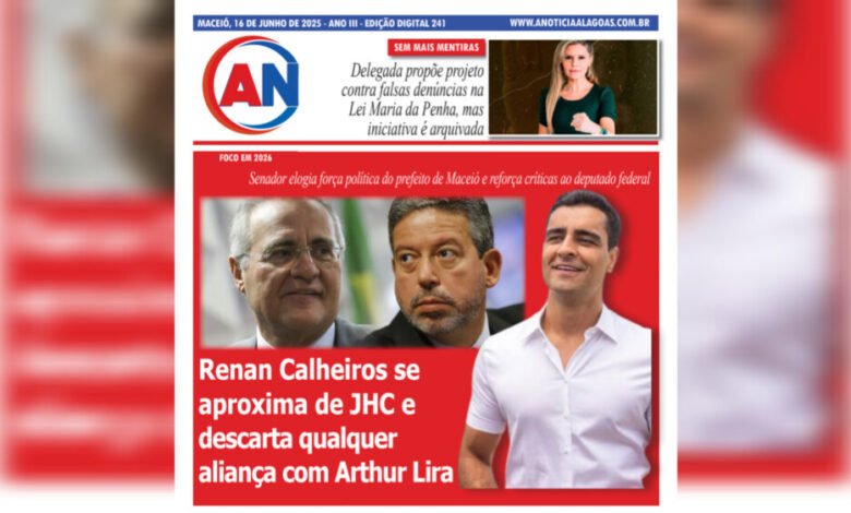 JORNAL A NOTÍCIA DIGITAL – FOCO EM 2026! Renan Calheiros se aproxima de JHC e descarta qualquer aliança com Arthur Lira Senador elogia força política do prefeito de Maceió e reforça críticas ao deputado federal JUN-241