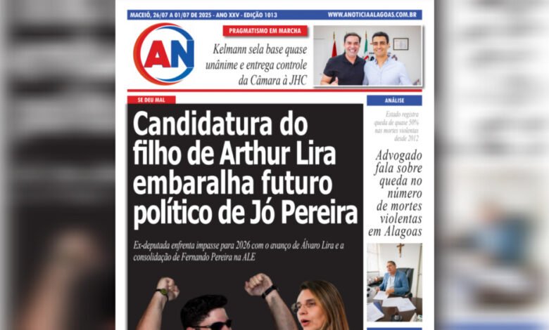JORNAL A NOTÍCIA DIGITAL – SE DEU MAL! Candidatura do filho de Arthur Lira embaralha futuro político de Jó Pereira Ex-deputada enfrenta impasse para 2026 com o avanço de Álvaro Lira e a consolidação de Fernando Pereira na ALE JUL-1013