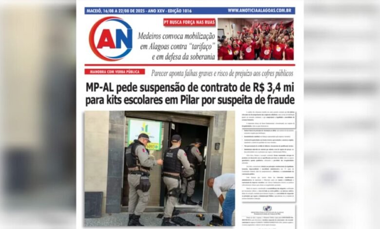 JORNAL A NOTÍCIA DIGITAL – MANOBRA COM VERBA PÚBLICA! MP-AL pede suspensão de contrato de R$ 3,4 mi para kits escolares em Pilar por suspeita de fraude Parecer aponta falhas graves e risco de prejuízo aos cofres públicos AGO-1016