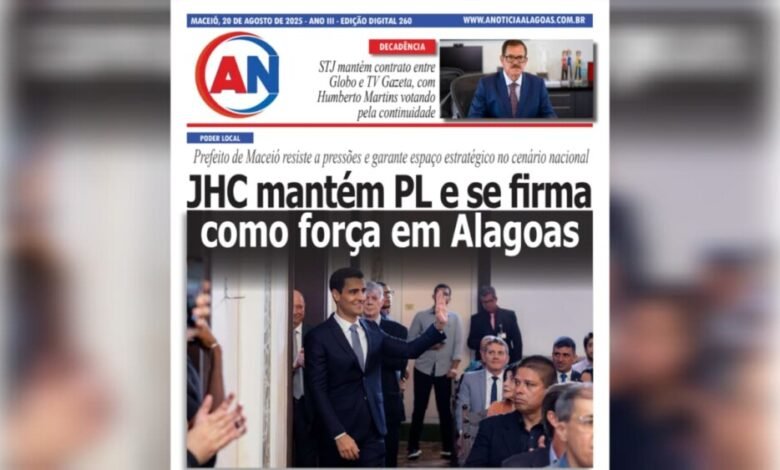 JORNAL A NOTÍCIA DIGITAL – PODER LOCAL – JHC mantém PL e se firma como força em Alagoas Prefeito de Maceió resiste a pressões e garante espaço estratégico no cenário nacional AGO-260