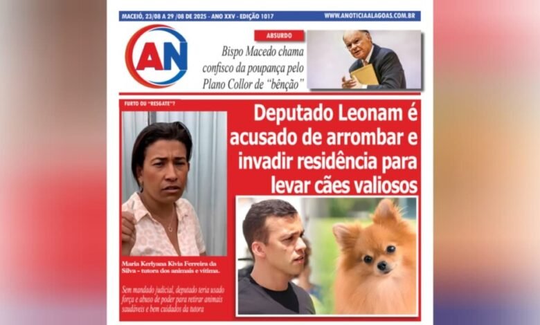 JORNAL A NOTÍCIA DIGITAL – FURTO OU “RESGATE”? Deputado Leonam é acusado de arrombar e invadir residência para levar cães valiosos Sem mandado judicial, deputado teria usado força e abuso de poder para retirar animais saudáveis e bem cuidados da tutora AGO-1017