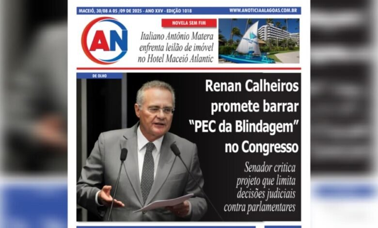 JORNAL A NOTÍCIA DIGITAL – DE OLHO! Renan Calheiros promete barrar “PEC da Blindagem” no Congresso Senador critica projeto que limita decisões judiciais contra parlamentares AGO-1018