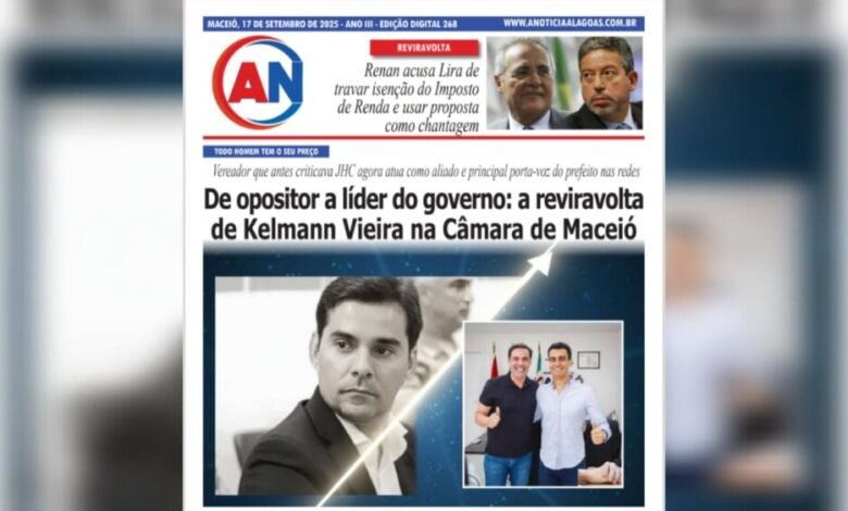 JORNAL A NOTÍCIA DIGITAL – TODO HOMEM TEM O SEU PREÇO! De opositor a líder do governo: a reviravolta de Kelmann Vieira na Câmara de Maceió
