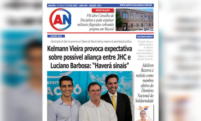 JORNAL A NOTÍCIA DIGITAL – ELEIÇÕES 2026! Kelmann Vieira provoca expectativa sobre possível aliança entre JHC e Luciano Barbosa: “Haverá sinais” Declaração do líder do governo na Câmara de Maceió reforça rumores de aproximação política OUT-1023-1