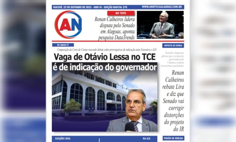 JORNAL A NOTÍCIA DIGITAL – DE QUEM É? Vaga de Otávio Lessa no TCE é de indicação do governador Composição da Corte de Contas reacende debate sobre prerrogativas de indicação entre Executivo e ALE OUT-278