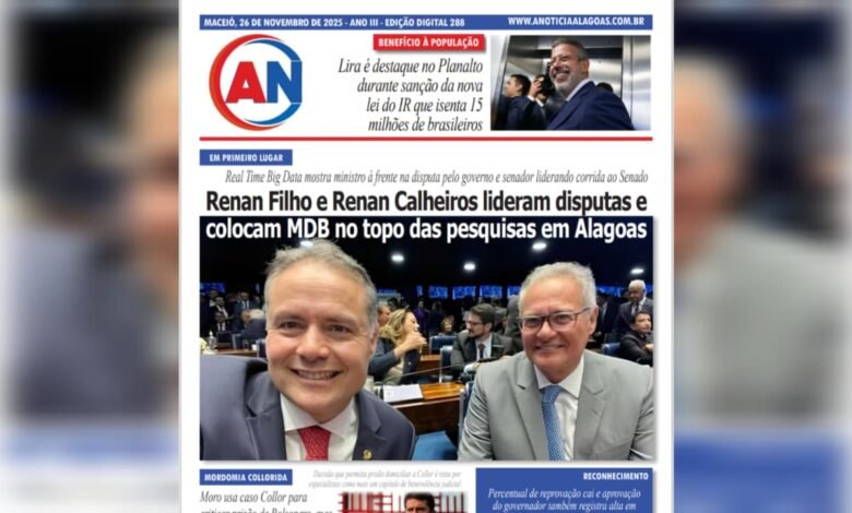 JORNAL A NOTÍCIA DIGITAL – EM PRIMEIRO LUGAR! Renan Filho e Renan Calheiros lideram disputas e colocam MDB no topo das pesquisas em Alagoas