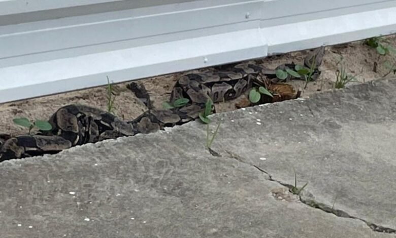 Jiboia de grande porte, no bairro de Jacarecica. O animal, que media