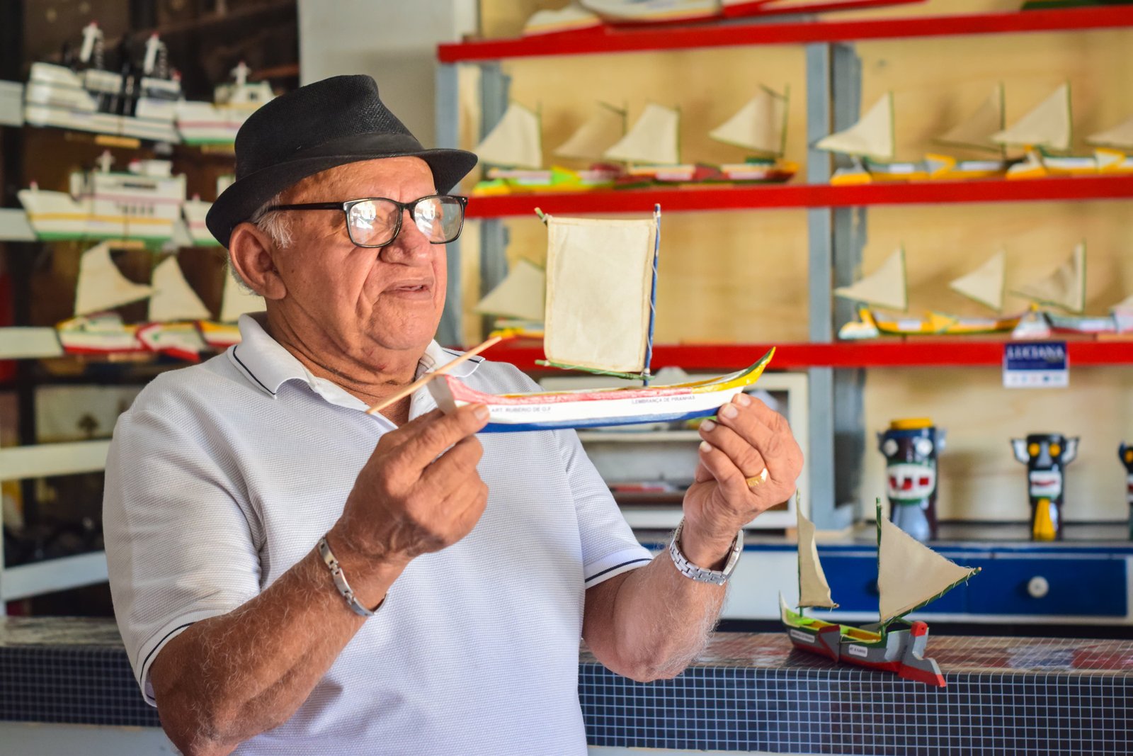 No sertão, em Piranhas, o mestre Rubério de Oliveira Fontes segue esculpindo memórias do Velho Chico em madeira. Suas embarcações em miniatura são testemunhos de um tempo que ele se recusa a deixar desaparecer.