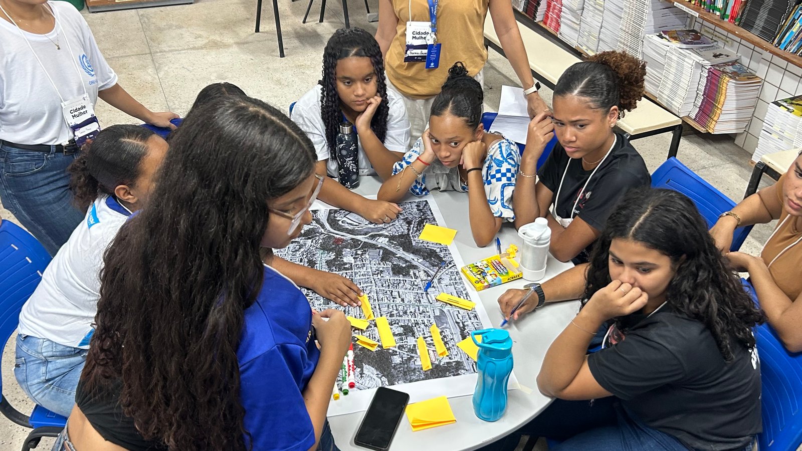 Alunas da rede estadual participam de dinâmica de cartografia coletiva, apontando desafios de segurança nos bairros de Maceió