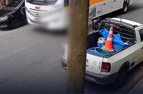 Motociclista morre após ser derrubado por porta e cair embaixo de ônibus