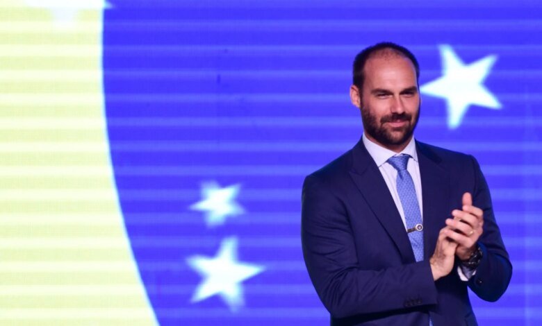 Eduardo é investigado por Moraes, por uma suposta coação no julgamento da trama golpista. Foi justamente por medo de ser preso no processo que o ex-deputado decidiu se autoexilar nos EUA.