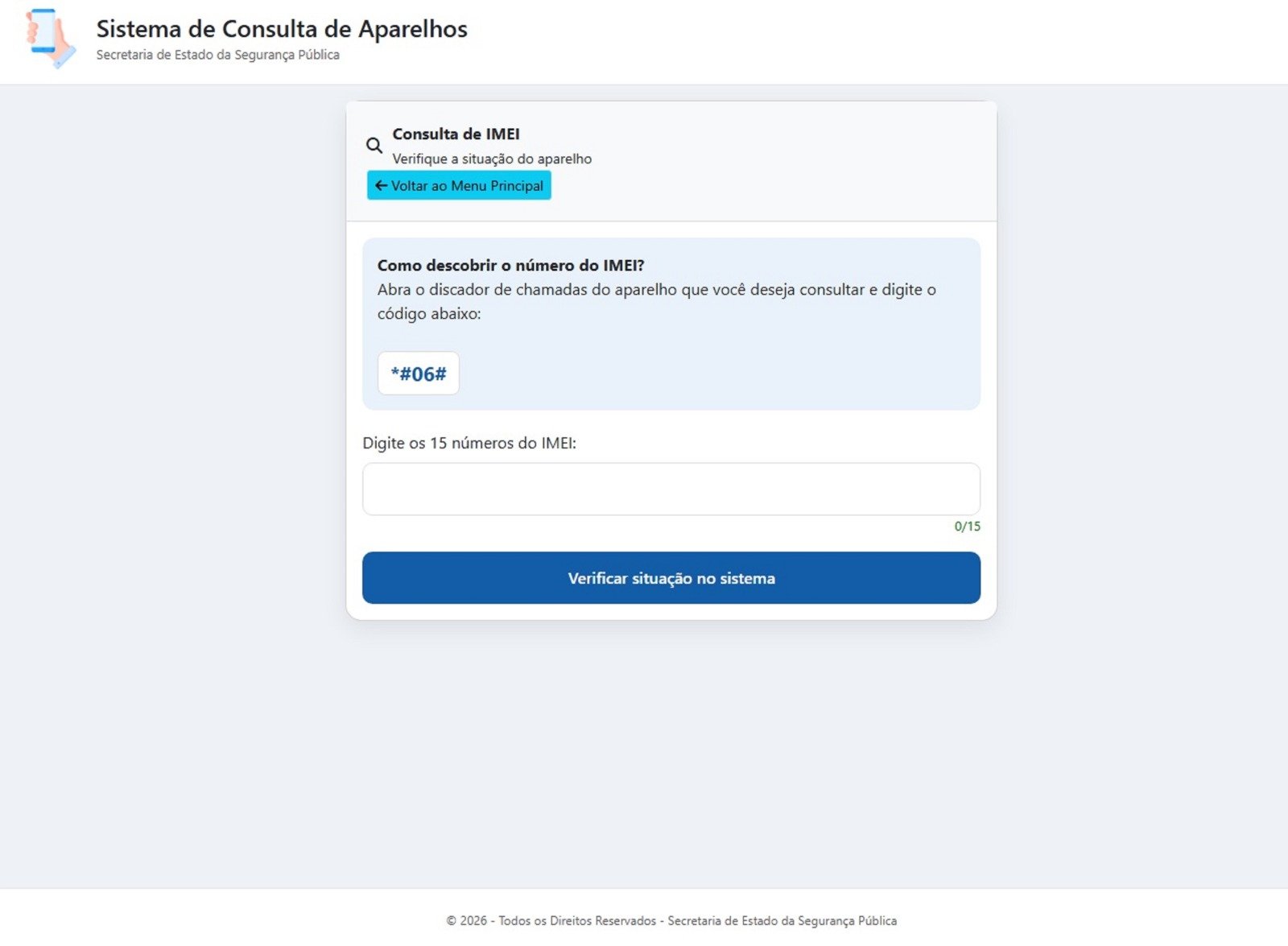 No site, também é possível verificar se equipamentos roubados, furtados ou extraviados