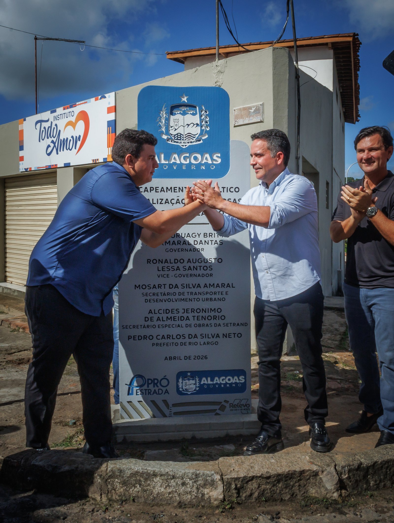Ao lado do prefeito de Rio Largo, Pedro Carlos, e do secretário de Estado do Transporte e Desenvolvimento Urbano, Mosart Amaral, o governador inaugurou as obras do Pró-Estrada e listou outras ações já realizadas no município.