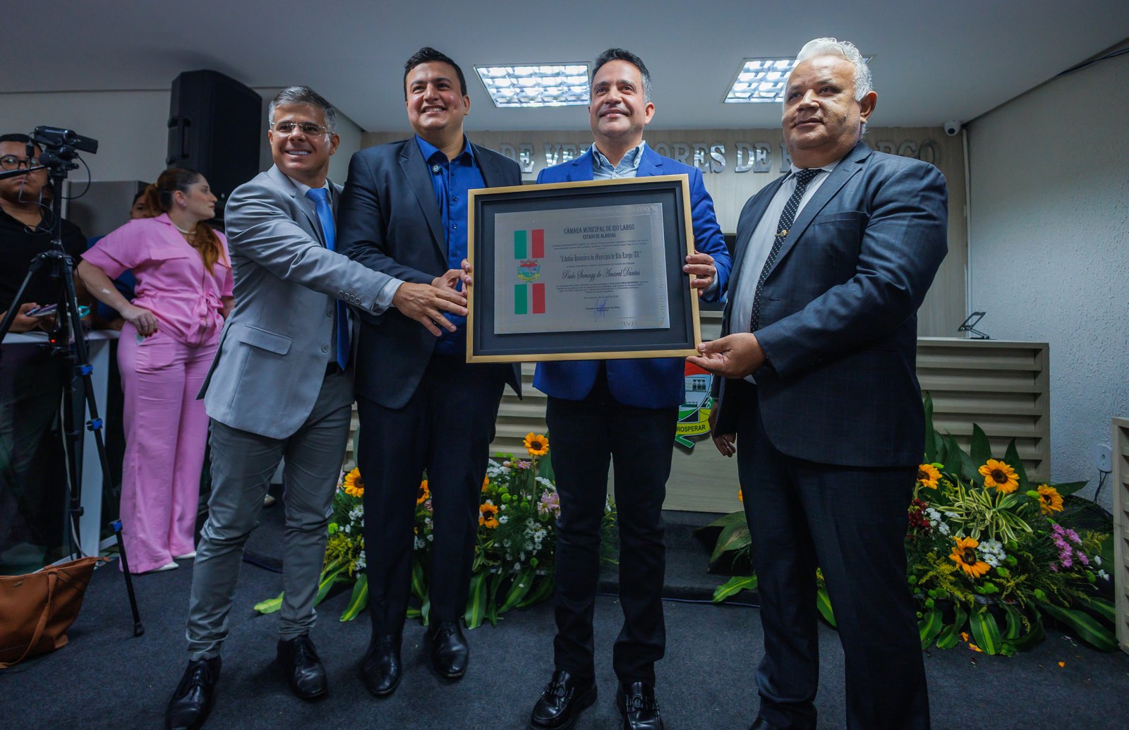 “Quero agradecer pelo título de cidadão honorário de Rio Largo, um município com grande relevância econômica e social. Essa honraria me traz ainda mais responsabilidade e me enche de alegria, motivação e entusiasmo”, declarou PauloDantas.