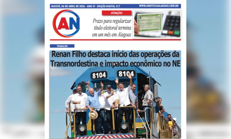 JORNAL A NOTÍCIA DIGITAL – TRABALHO! Renan Filho destaca início das operações da Transnordestina e impacto econômico no NE Primeiras viagens de carga marcam avanço de obra estratégica retomada em 2025, com promessa de reduzir custos logísticos e impulsionar a região ABR-317
