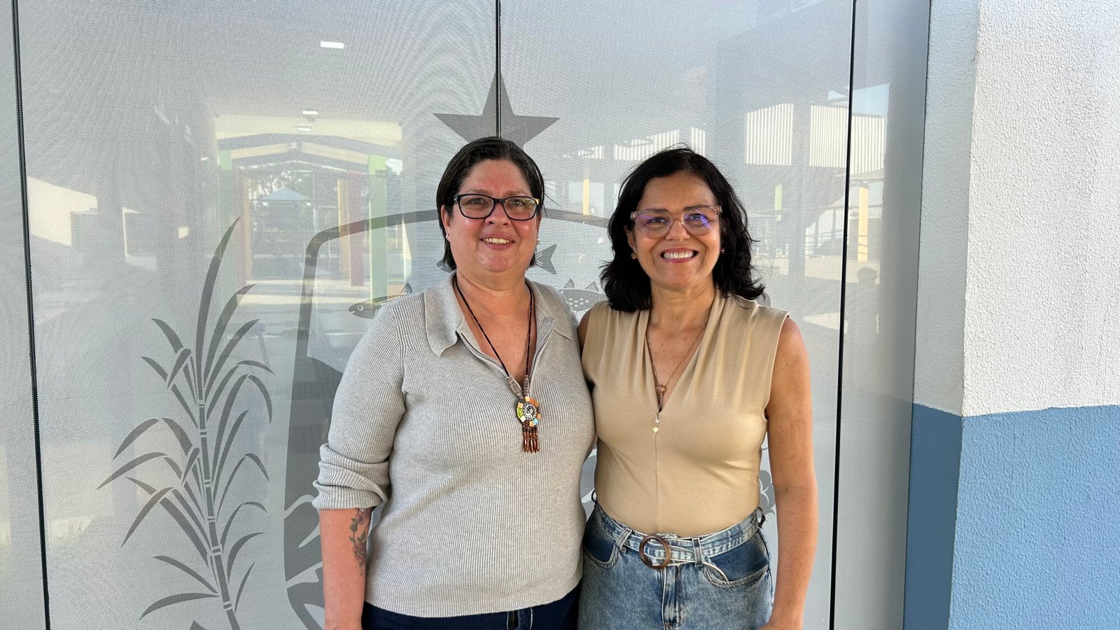 e a adjunta, Adriana da Silva, acompanham de perto a chegada da escola em uma