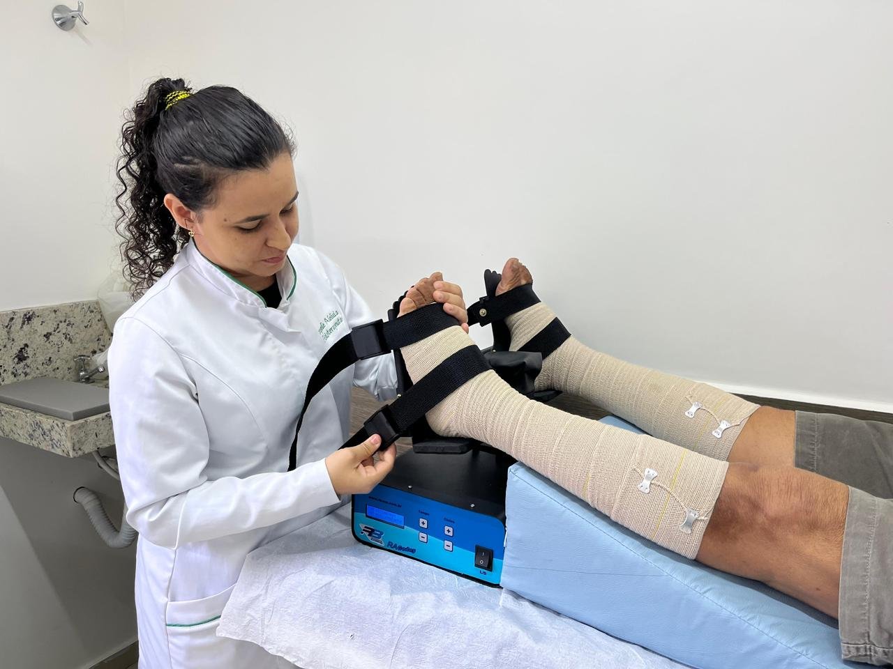 feridas complexas, pé diabético e úlceras varicosas. A estrutura inclui sala de