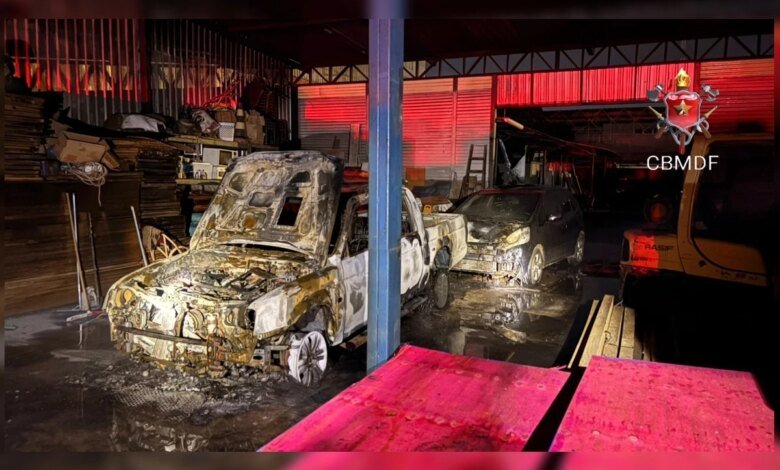 Carros são destruídos por incêndio dentro de madeireira no SIA Incêndio aconteceu durante a madrugada desta sexta-feira (10/4) no SIA, Trecho 2; não houve vítimas FONTE: Metrópoles