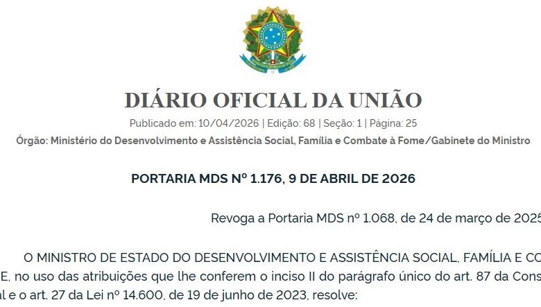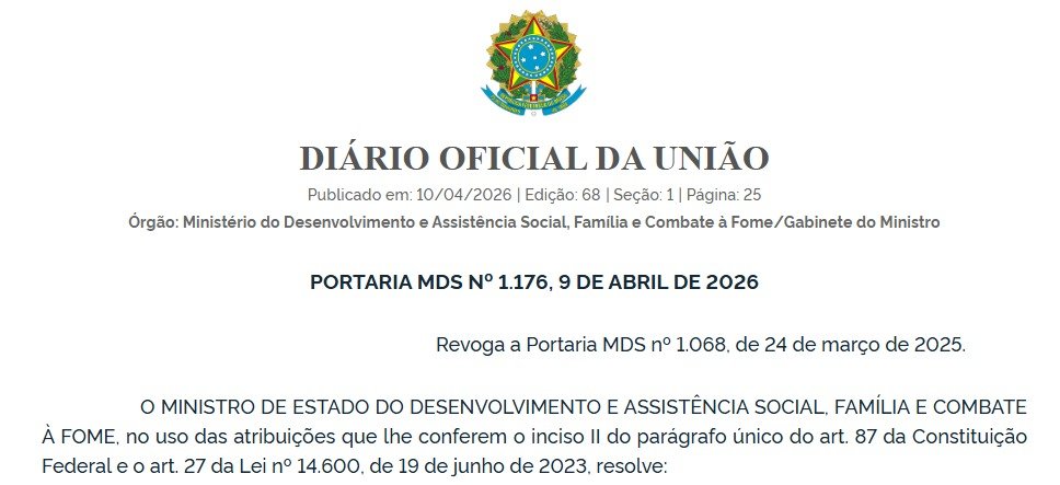 Foi publicada no Diário Oficial da União (DOU) a Portaria MDS 1.176/2026, que revoga a Portaria 1.068/2025 para restabelecer os critérios regulares de cofinanciamento federal do Serviço de Convivência e Fortalecimento de Vínculos (SCFV). A norma revogada havia instituído em caráter excepcional regras diferenciadas para o repasse de recursos aos Municípios e ao Distrito Federal durante o período de manutenção do Sistema de Informações do Serviço de Convivência e Fortalecimento de Vínculos (SISC) a partir do segundo trimestre de 2025.