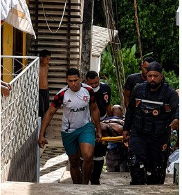 motolância. No transporte da casa até a ambulância, teve apoio de moradores.