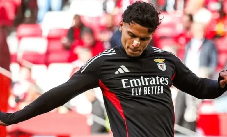 Richard Ríos durante aquecimento (Foto: Divulgação-SL Benfica)