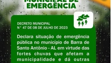 CHUVAS: Prefeitura da Barra de Santo Antônio decreta estado de emergência