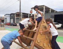 Alunos da Escola Municipal Zilka de Oliveira curtem atividade de lazer na Praça Eurico Mendonça Fernandes
