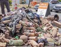Prefeitura retira garrafas pets, botijão e outros objetos de galeria na Avenida Dona Constança