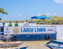 Ecoboat: equipamentos fazem limpeza da lagoa Mundaú e recolhem cerca de uma tonelada de lixo por dia