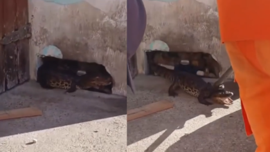 Jacaré surpreende moradores ao aparecer em frente de residência em Arapiraca