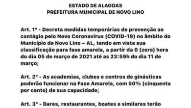 NOVO DECRETO! Prefeitura de Novo Lino publica medidas para conter crescimento da Covid-19