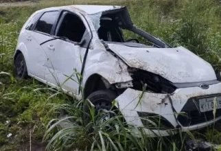 Veículo capota após colisão e mulher fica ferida na AL-215