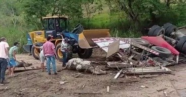 Caminhão boiadeiro capota e motorista morre após ficar preso às ferragens